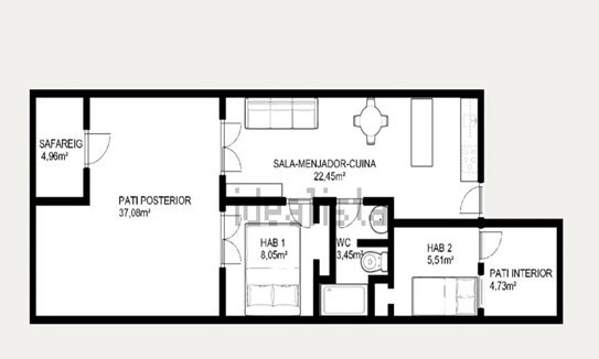 Consta de dos dormitoris, cuina, saló i un bany.